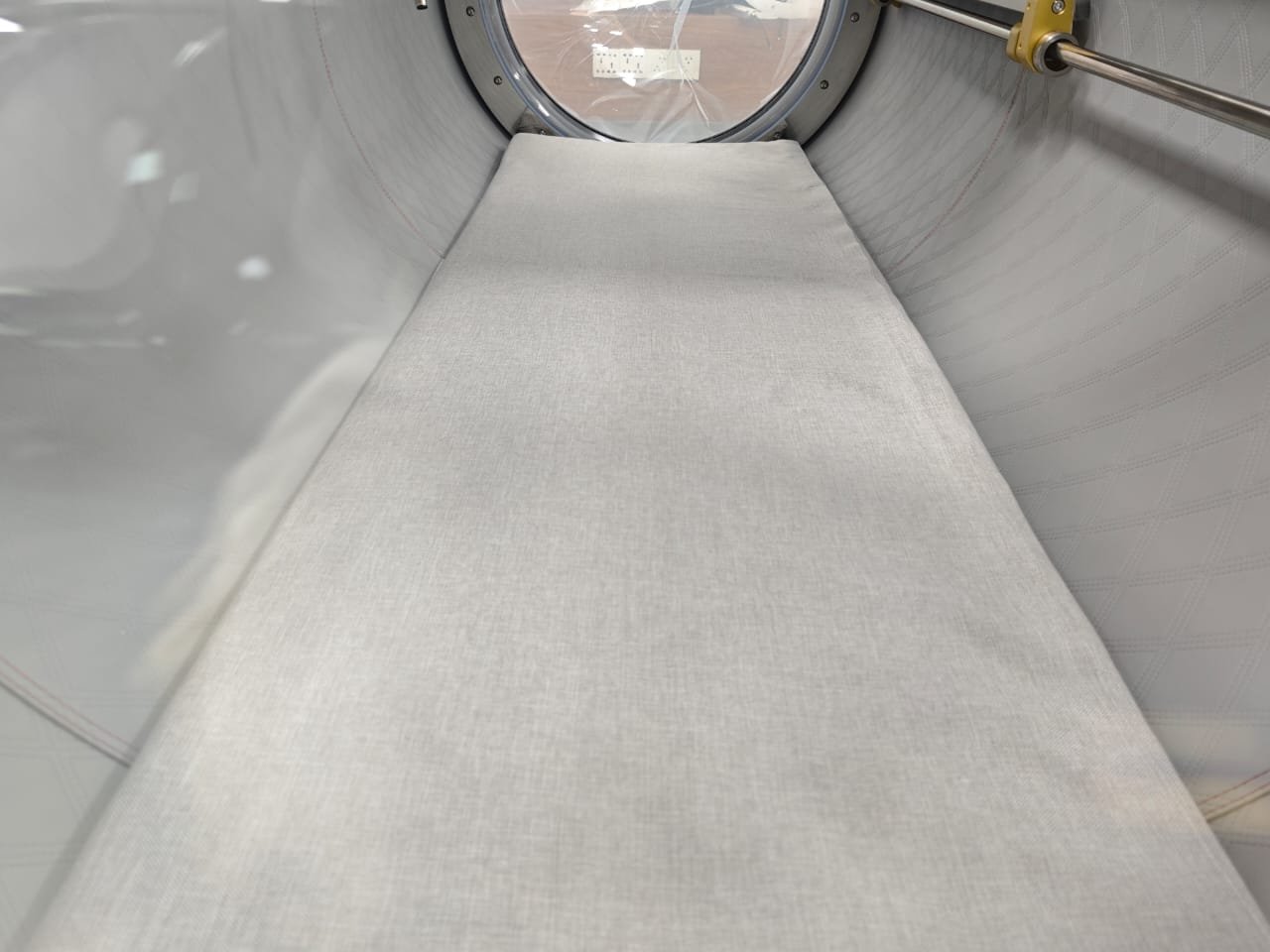 Build quality extends to every structural joint. New advanced welding and splicing techniques tightly join stainless steel and polycarbonate; moreover, external aluminium reinforcement rings increase integrity under continuous use. Laser-etched valve markings resist wear, stainless-steel and nylon wheels aid repositioning, and the pressure switch supports preset customisation (e.g., 1.3/1.5/1.8/2.0 ATA) for different protocols. Additionally, red and near-infrared therapy lights can be added, while colour options include white, black, silver, grey, and dark blue, with others available on request.